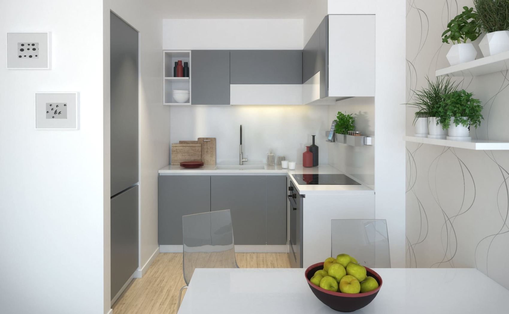 Optimally designed spaces, sunny apartments.